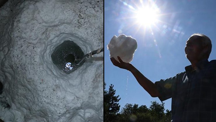 Kayseri'de Erciyes Dağı eteklerinde bulunan Hacılar ilçesinde, yaz aylarının kavurucu sıcaklarından bunalan vatandaşlar, kışın kuyulara doldurdukları karı...